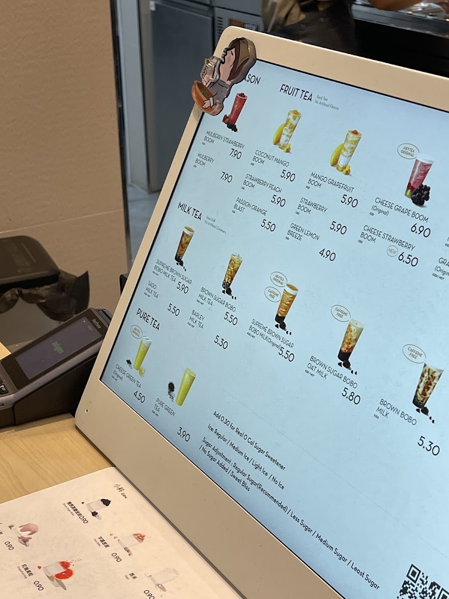 The Bobo Milk Tea selection features traditional milk teas with brown sugar boba pearls, including the Supreme Brown Sugar Bobo Milk Tea made with slow-cooked brown sugar and real dairy milk.